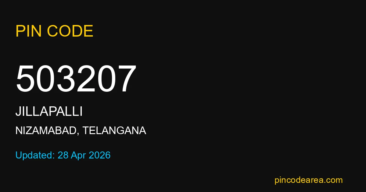 503207 PIN Code is assigned to Jillapalli Post Office located in Nizamabad district of Telangana. It helps identify the exact delivery area for postal and courier services.