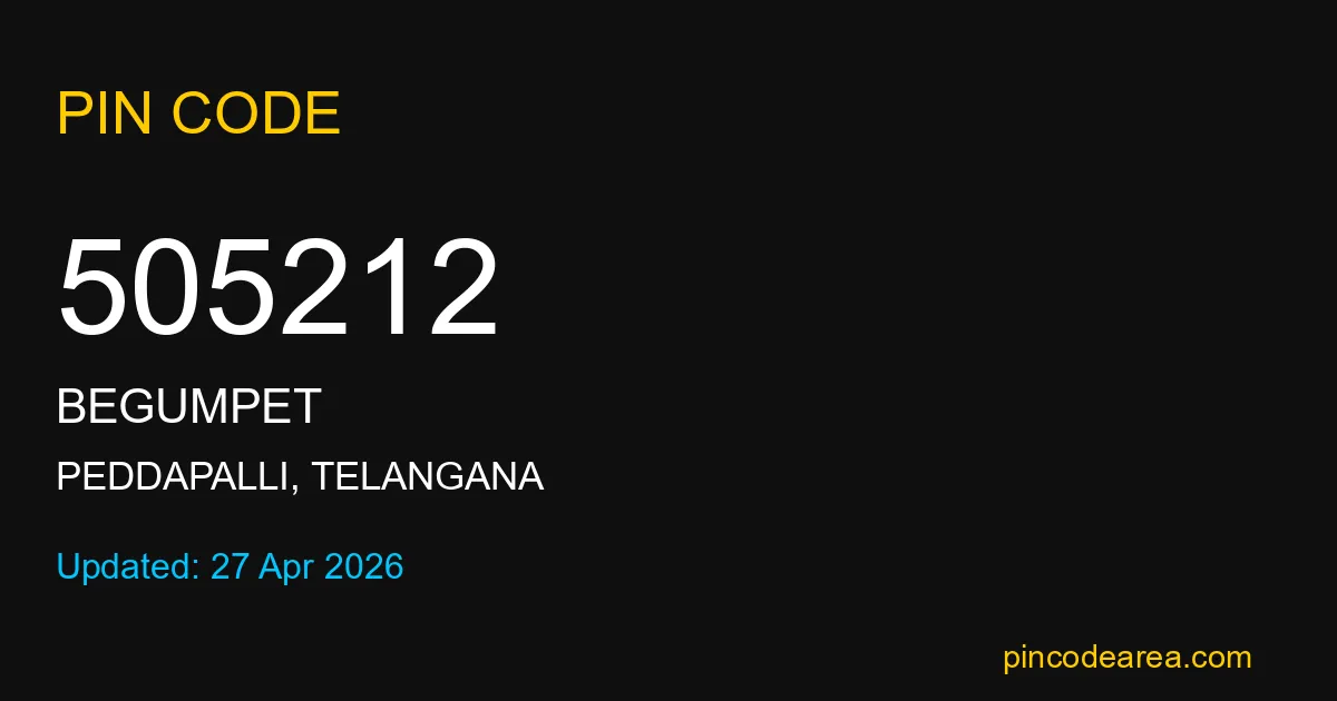 505212 PIN Code is assigned to Begumpet Post Office located in Peddapalli district of Telangana. It helps identify the exact delivery area for postal and courier services.