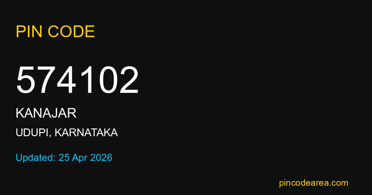 If you are searching for accurate location details, 574102 helps identify the exact postal region of Kanajar in Karnataka.