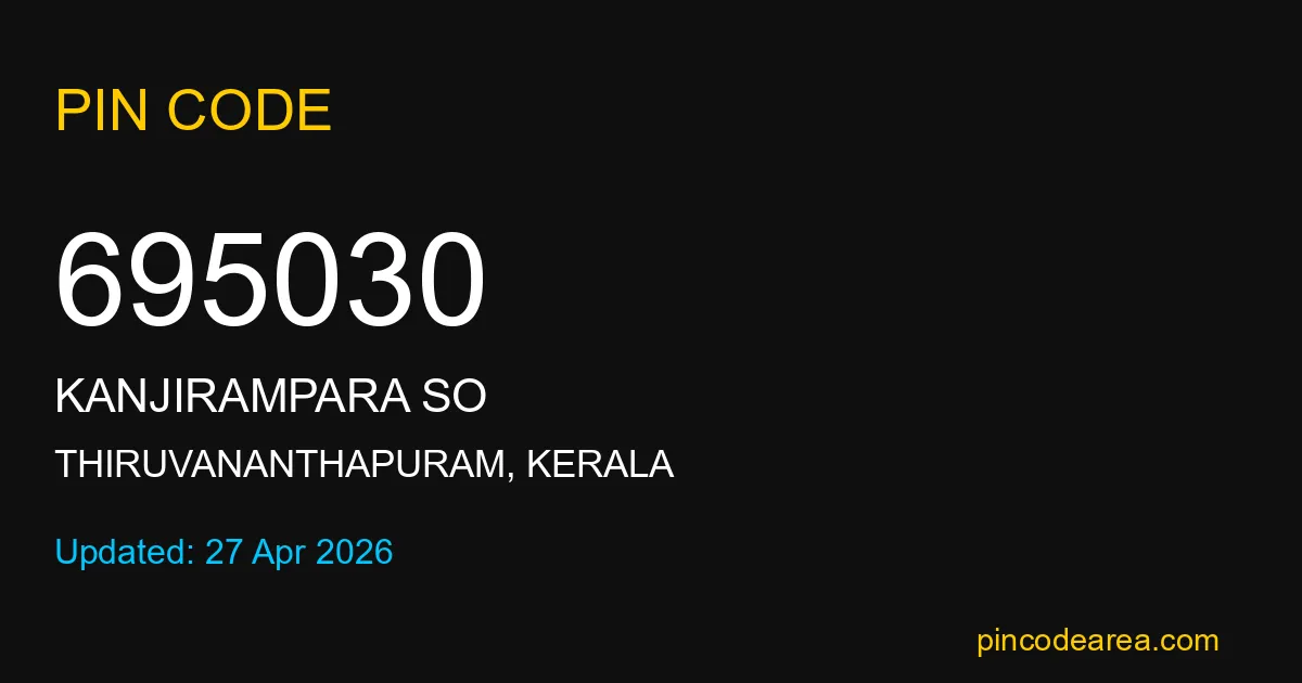 695030 PIN Code is assigned to Kanjirampara SO Post Office located in Thiruvananthapuram district of Kerala. It helps identify the exact delivery area for postal and courier services.
