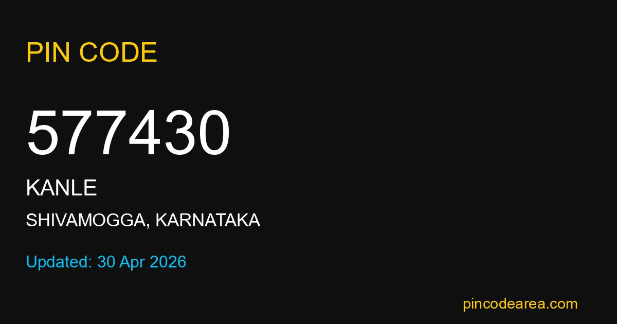 577430 PIN Code is assigned to Kanle Post Office located in Shivamogga district of Karnataka. It helps identify the exact delivery area for postal and courier services.