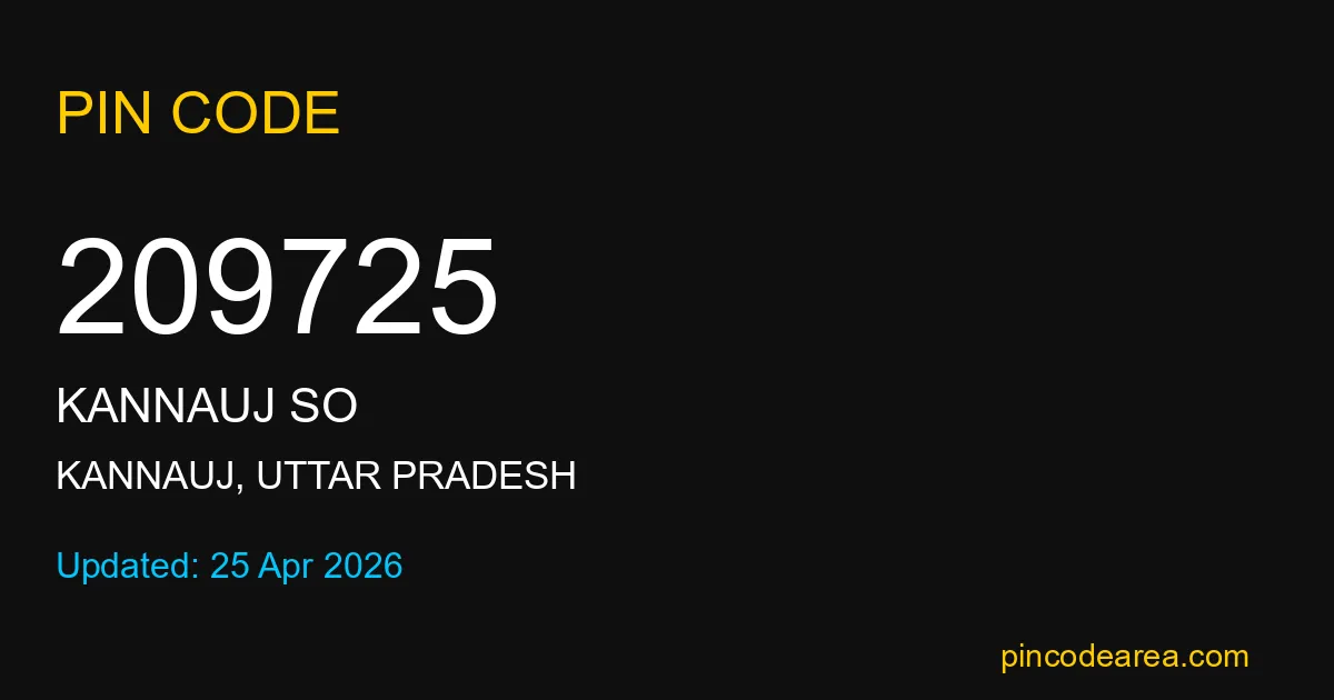 If you are searching for accurate location details, 209725 helps identify the exact postal region of Kannauj SO in Uttar Pradesh.