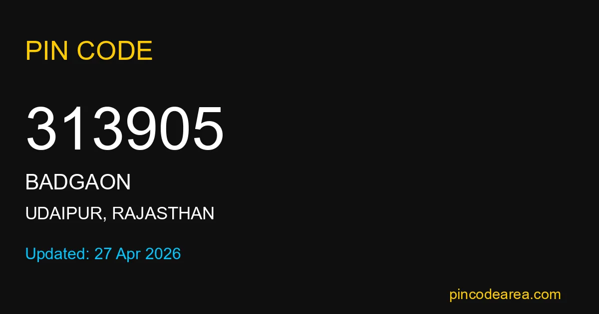 If you are searching for accurate location details, 313905 helps identify the exact postal region of Badgaon in Rajasthan.