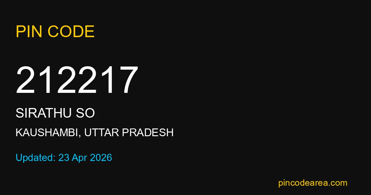 212217 PIN Code belongs to Sirathu SO Post Office in Kaushambi district of Uttar Pradesh, India. This area mainly includes local residential and rural regions where India Post ensures timely mail and parcel delivery services.