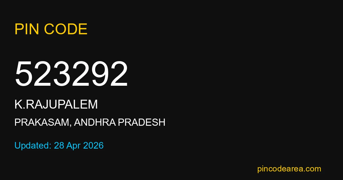 If you are searching for accurate location details, 523292 helps identify the exact postal region of K.Rajupalem in Andhra Pradesh.