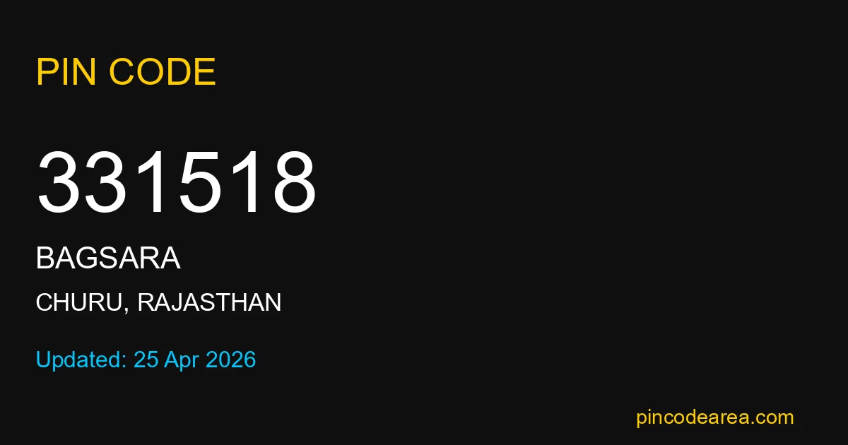 If you are searching for accurate location details, 331518 helps identify the exact postal region of Bagsara in Rajasthan.