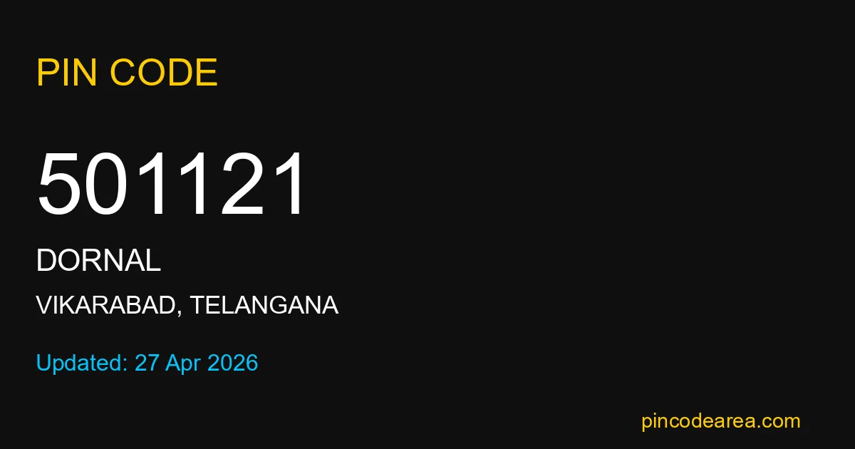 501121 PIN Code is assigned to Dornal Post Office located in Vikarabad district of Telangana. It helps identify the exact delivery area for postal and courier services.