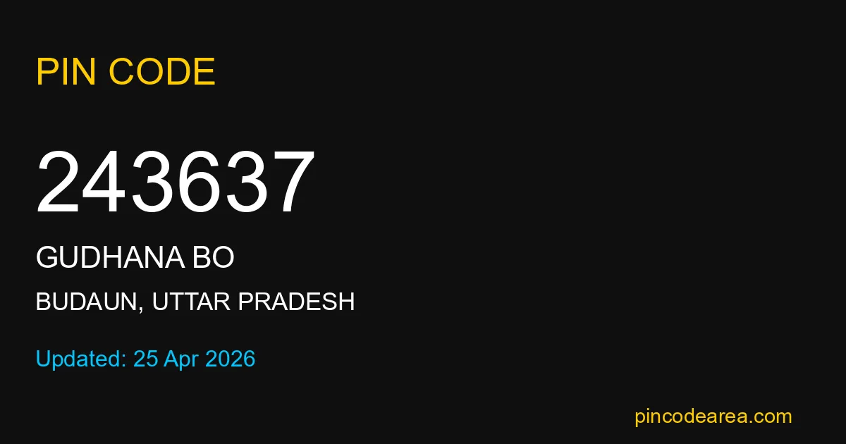 243637 PIN Code belongs to Gudhana BO Post Office in Budaun district of Uttar Pradesh, India. This area mainly includes local residential and rural regions where India Post ensures timely mail and parcel delivery services.