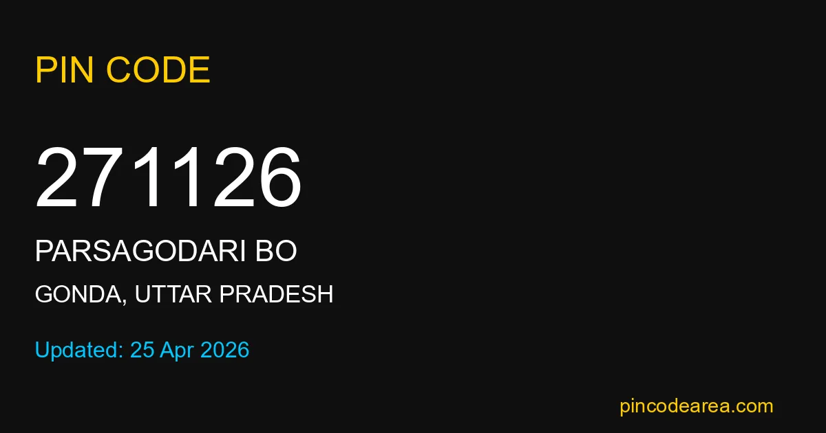 271126 PIN Code belongs to Parsagodari BO Post Office in Gonda district of Uttar Pradesh, India. This area mainly includes local residential and rural regions where India Post ensures timely mail and parcel delivery services.