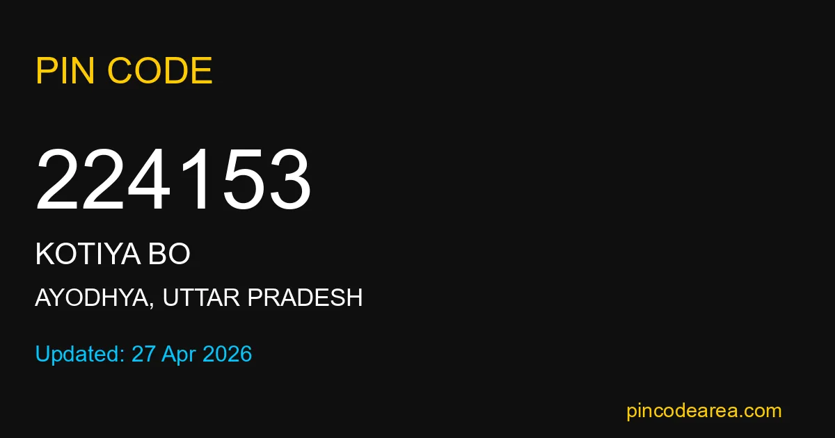 224153 PIN Code belongs to Kotiya BO Post Office in Ayodhya district of Uttar Pradesh, India. This area mainly includes local residential and rural regions where India Post ensures timely mail and parcel delivery services.