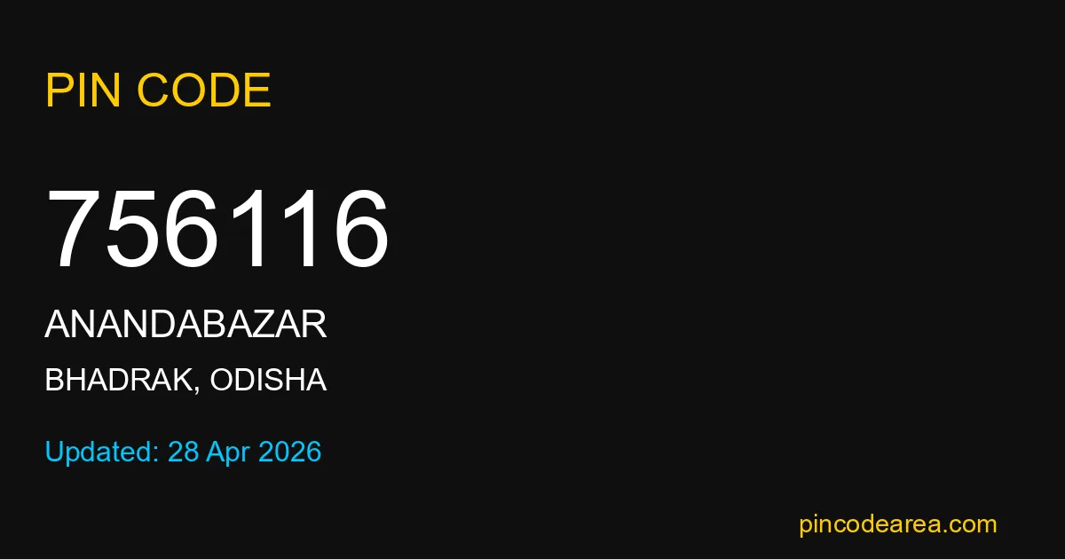 If you are searching for accurate location details, 756116 helps identify the exact postal region of Anandabazar in Odisha.