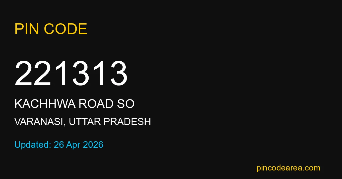 221313 PIN Code is assigned to Kachhwa Road SO Post Office located in Varanasi district of Uttar Pradesh. It helps identify the exact delivery area for postal and courier services.