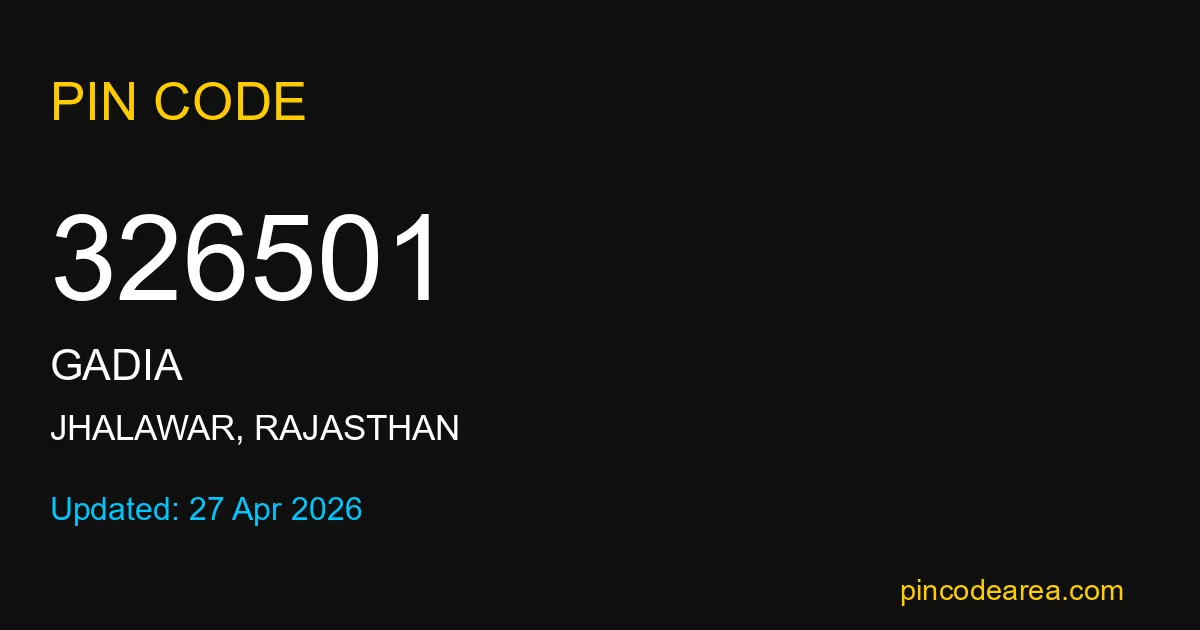 326501 PIN Code is assigned to Gadia Post Office located in Jhalawar district of Rajasthan. It helps identify the exact delivery area for postal and courier services.