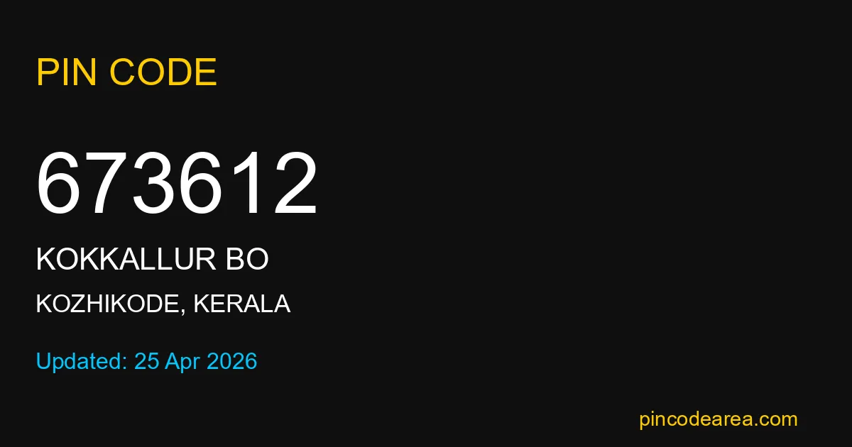 If you are searching for accurate location details, 673612 helps identify the exact postal region of Kokkallur BO in Kerala.