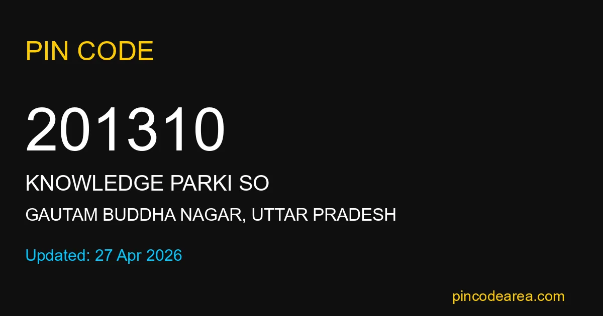 201310 PIN Code is assigned to Knowledge ParkI SO Post Office located in Gautam Buddha Nagar district of Uttar Pradesh. It helps identify the exact delivery area for postal and courier services.