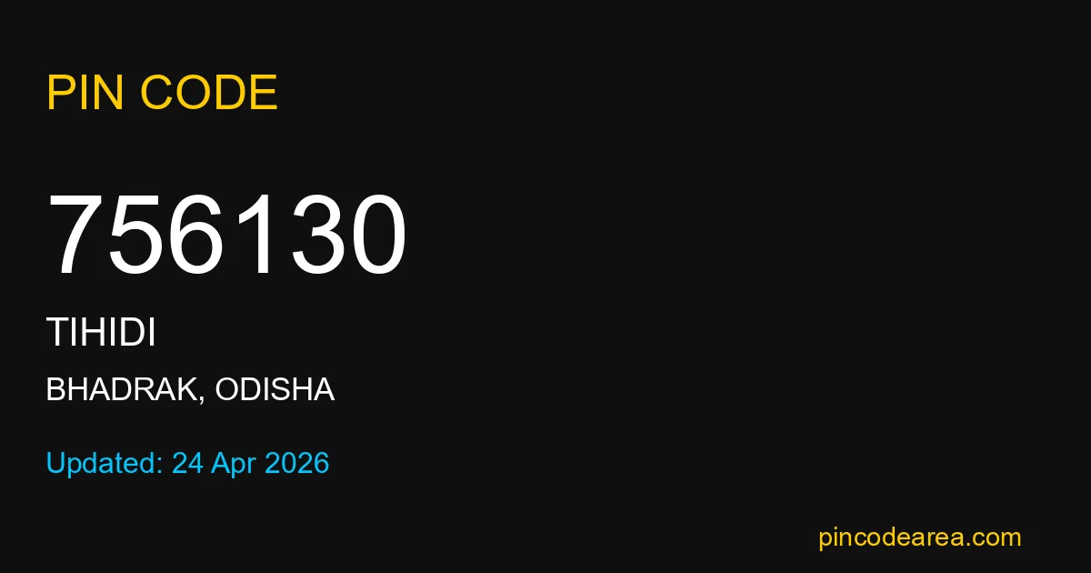 If you are searching for accurate location details, 756130 helps identify the exact postal region of Tihidi in Odisha.