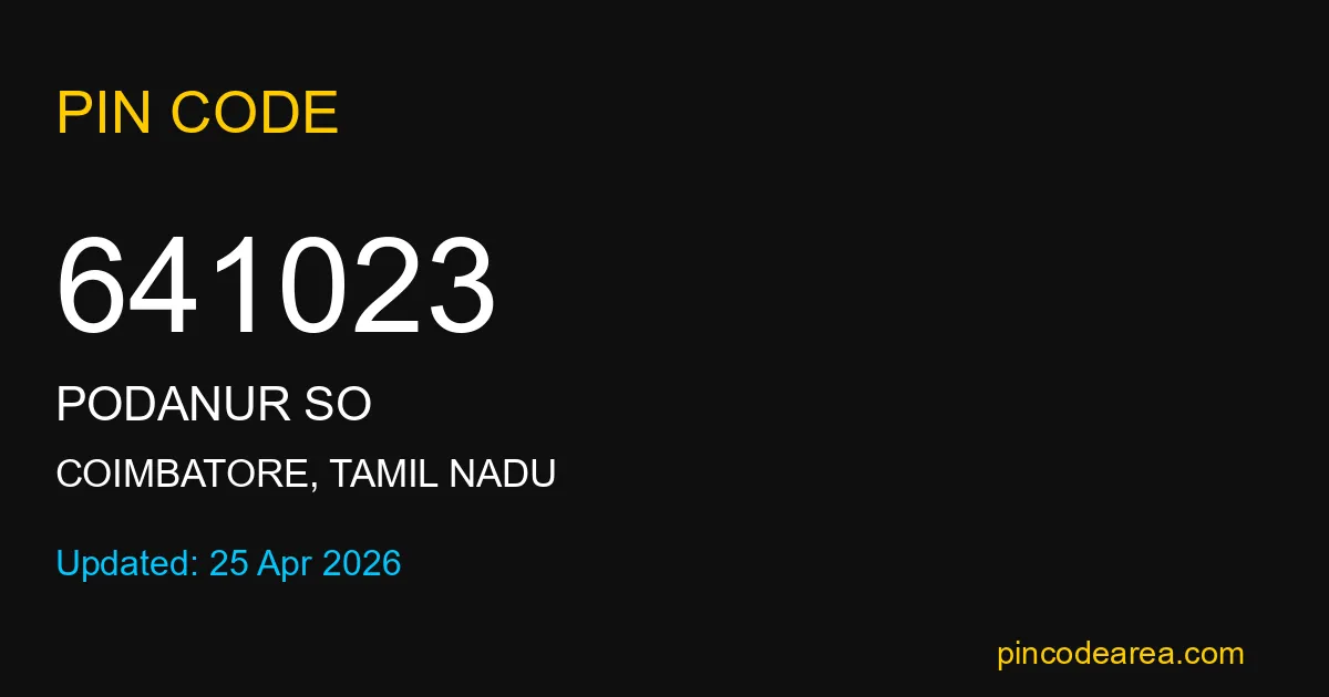 641023 PIN Code belongs to Podanur SO Post Office in Coimbatore district of Tamil Nadu, India. This area mainly includes local residential and rural regions where India Post ensures timely mail and parcel delivery services.