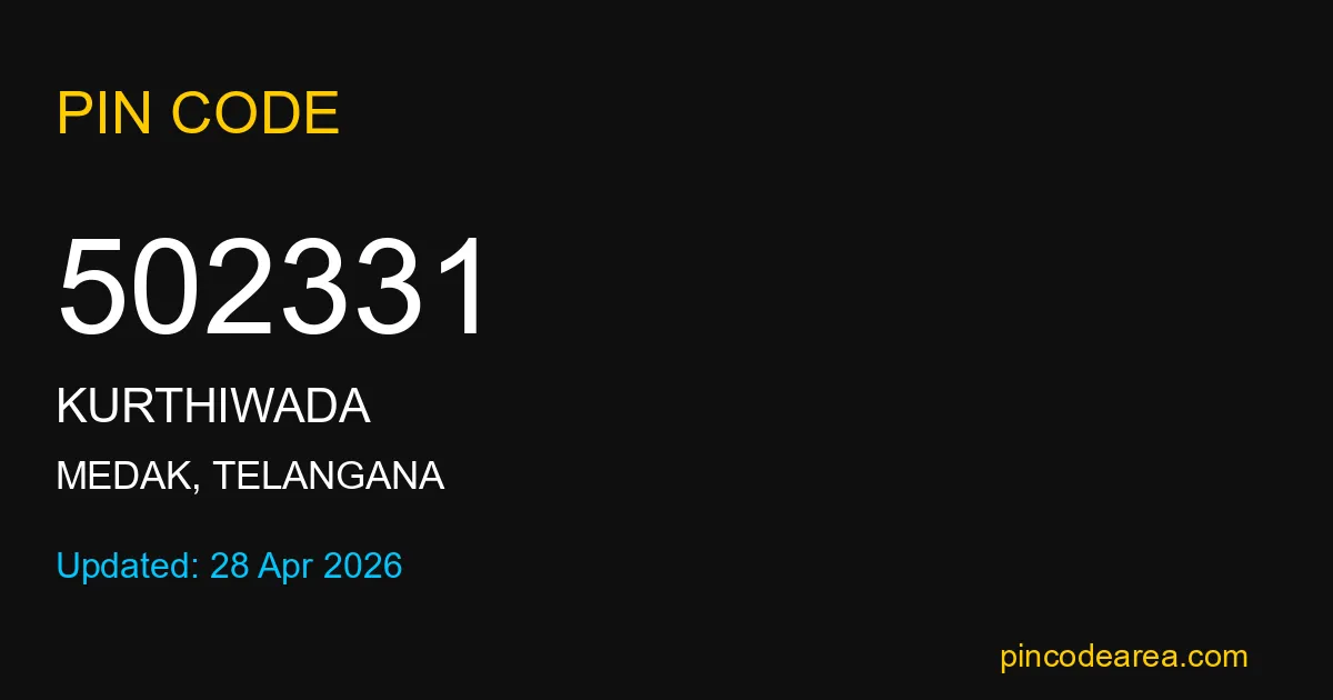 502331 PIN Code is assigned to Kurthiwada Post Office located in Medak district of Telangana. It helps identify the exact delivery area for postal and courier services.