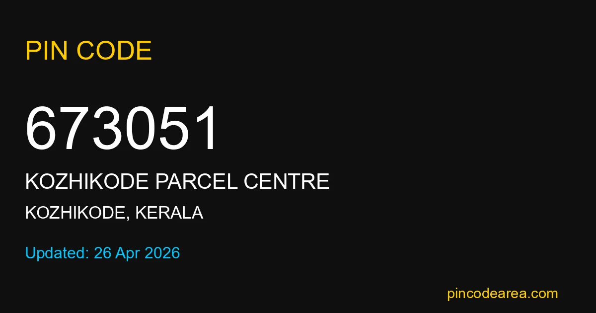 673051 PIN Code belongs to KOZHIKODE PARCEL CENTRE Post Office in Kozhikode district of Kerala, India. This area mainly includes local residential and rural regions where India Post ensures timely mail and parcel delivery services.