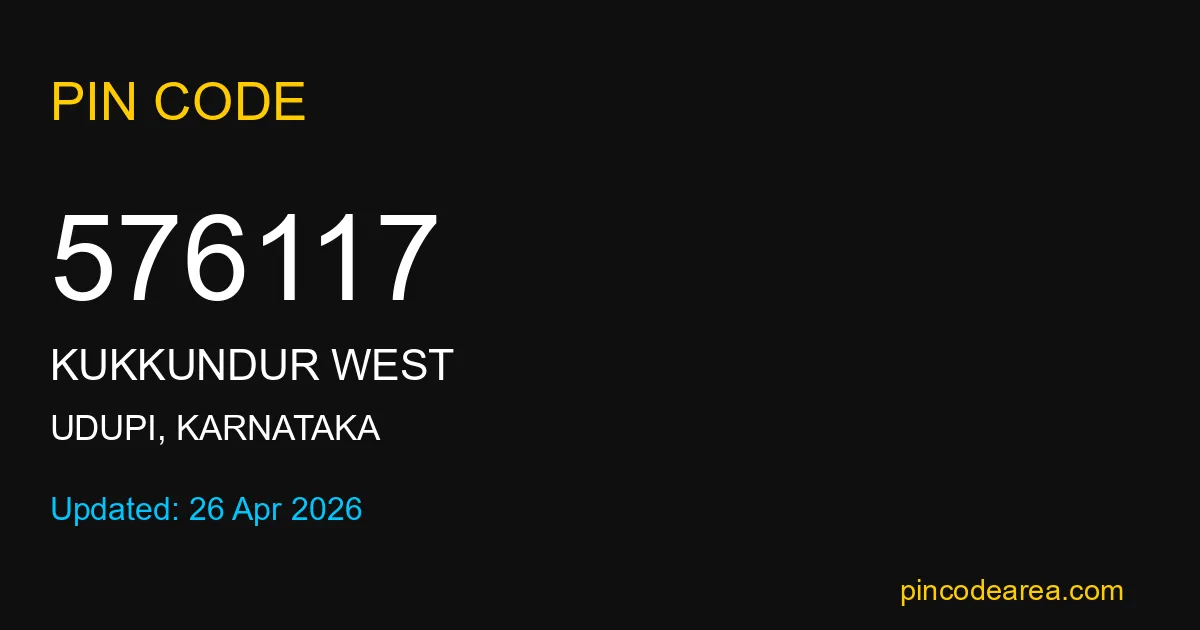 576117 PIN Code is assigned to Kukkundur West Post Office located in Udupi district of Karnataka. It helps in identifying the exact delivery area.