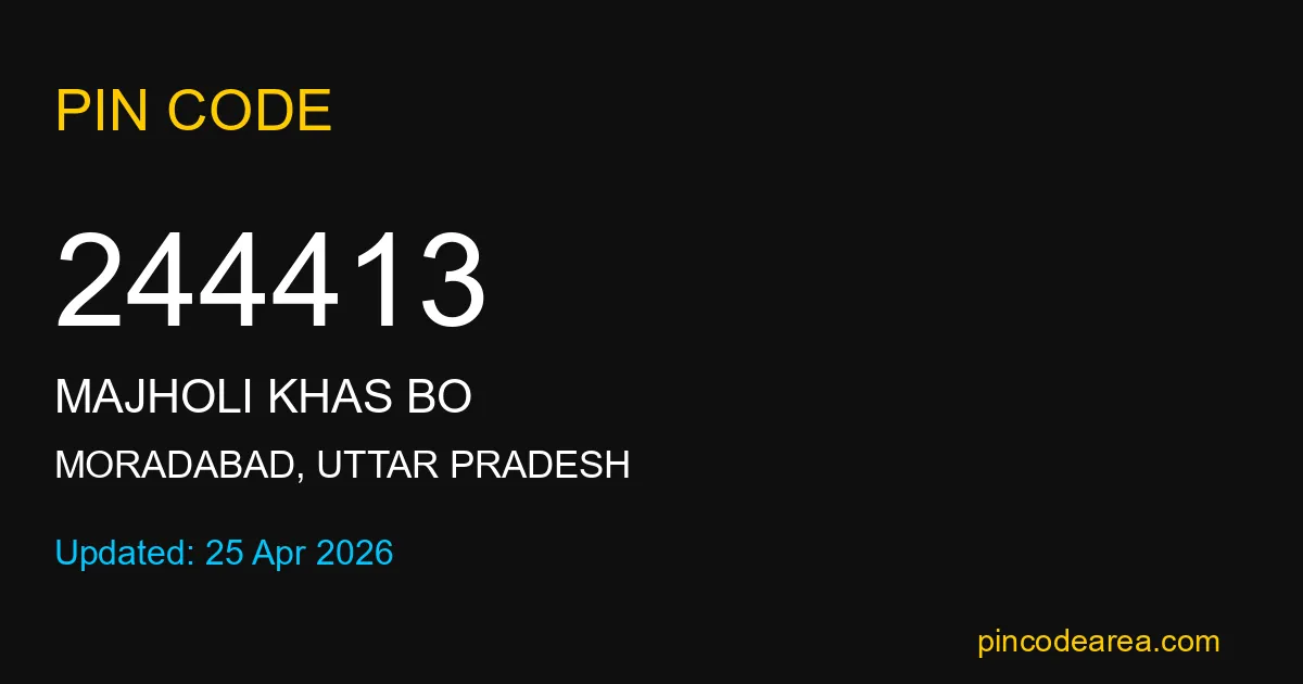 244413 PIN Code belongs to Majholi Khas BO Post Office in Moradabad district of Uttar Pradesh, India. This area mainly includes local residential and rural regions where India Post ensures timely mail and parcel delivery services.