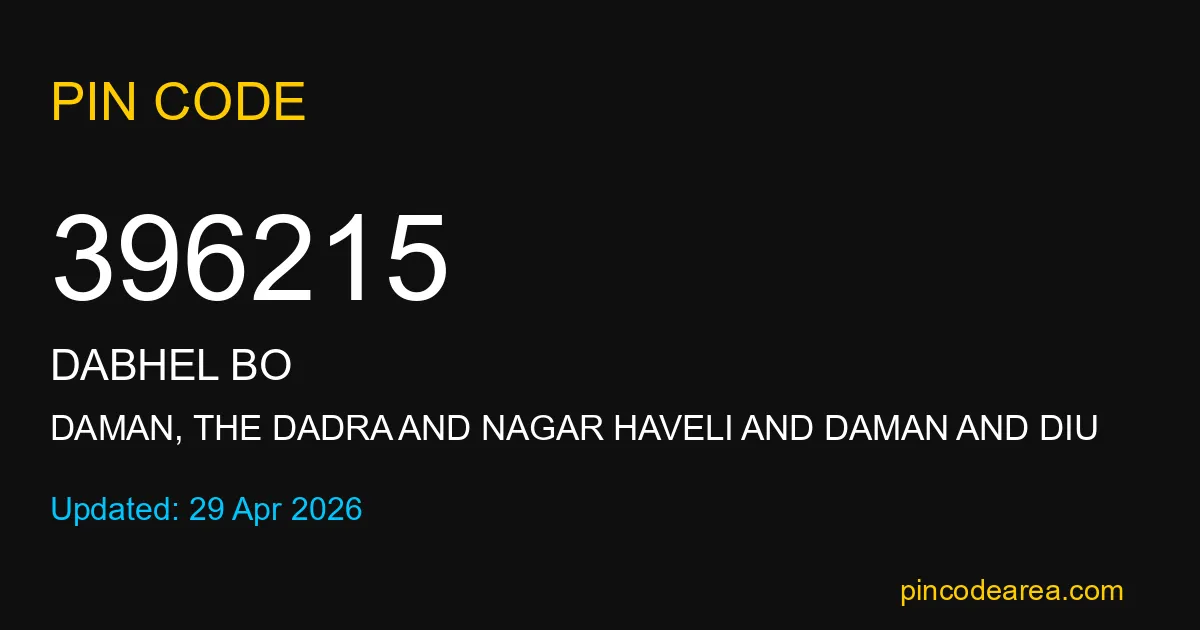 Many users search for 396215 PIN Code to confirm address details, track courier services, and ensure correct delivery location in Daman district.