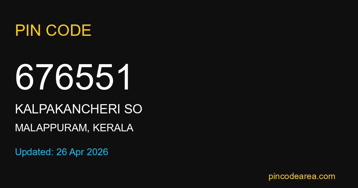 676551 PIN Code belongs to Kalpakancheri SO Post Office in Malappuram district of Kerala, India. This area mainly includes local residential and rural regions where India Post ensures timely mail and parcel delivery services.