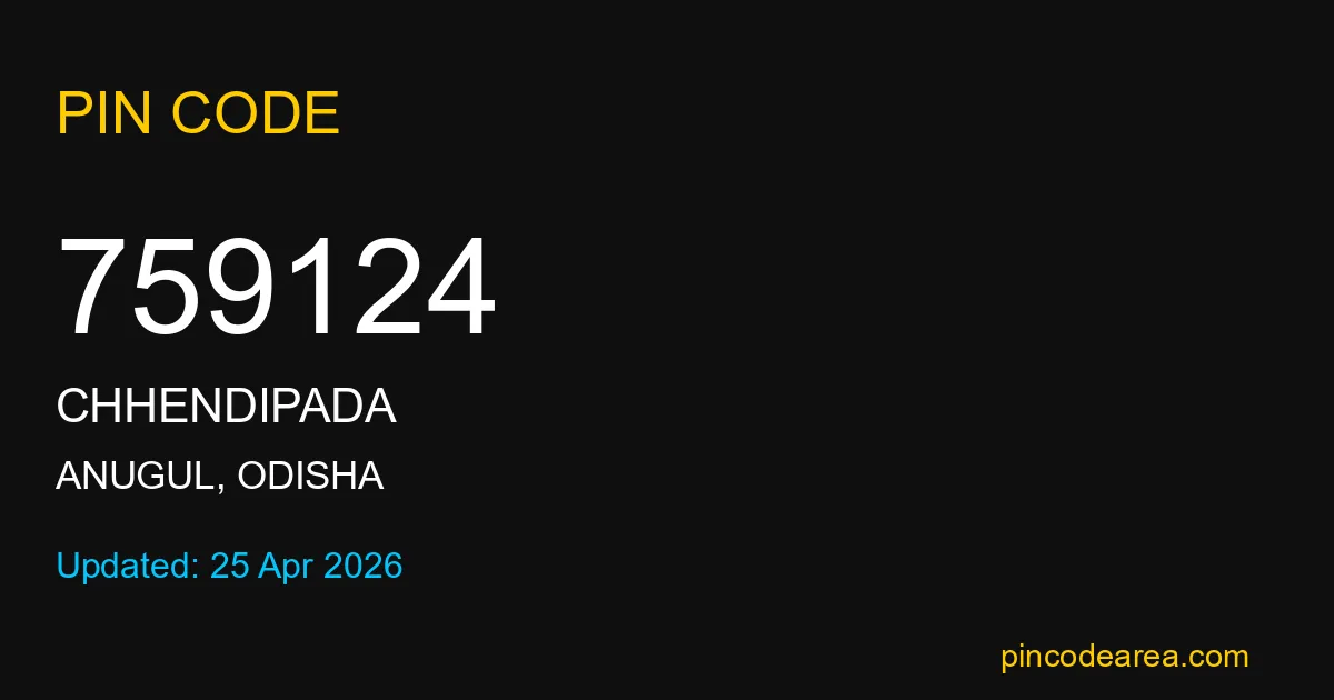 If you are searching for accurate location details, 759124 helps identify the exact postal region of Chhendipada in Odisha.