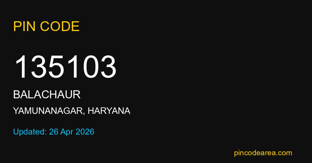If you are searching for accurate location details, 135103 helps identify the exact postal region of Balachaur in Haryana.