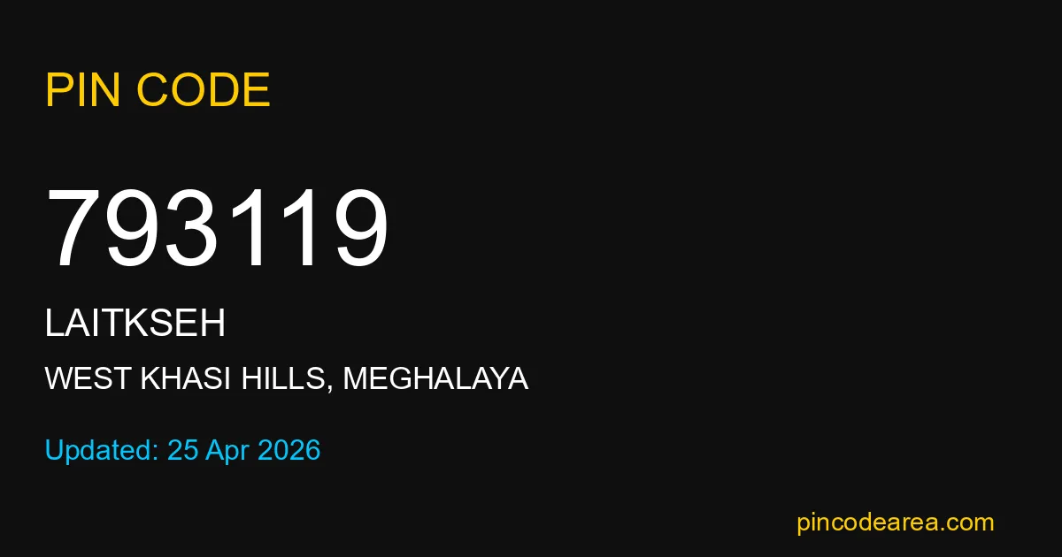 If you are searching for accurate location details, 793119 helps identify the exact postal region of Laitkseh in Meghalaya.