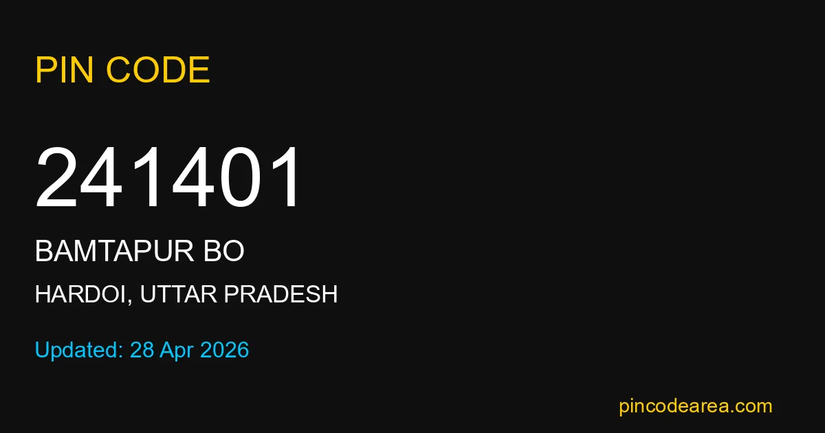 241401 PIN Code is assigned to Bamtapur BO Post Office located in Hardoi district of Uttar Pradesh. It helps identify the exact delivery area for postal and courier services.