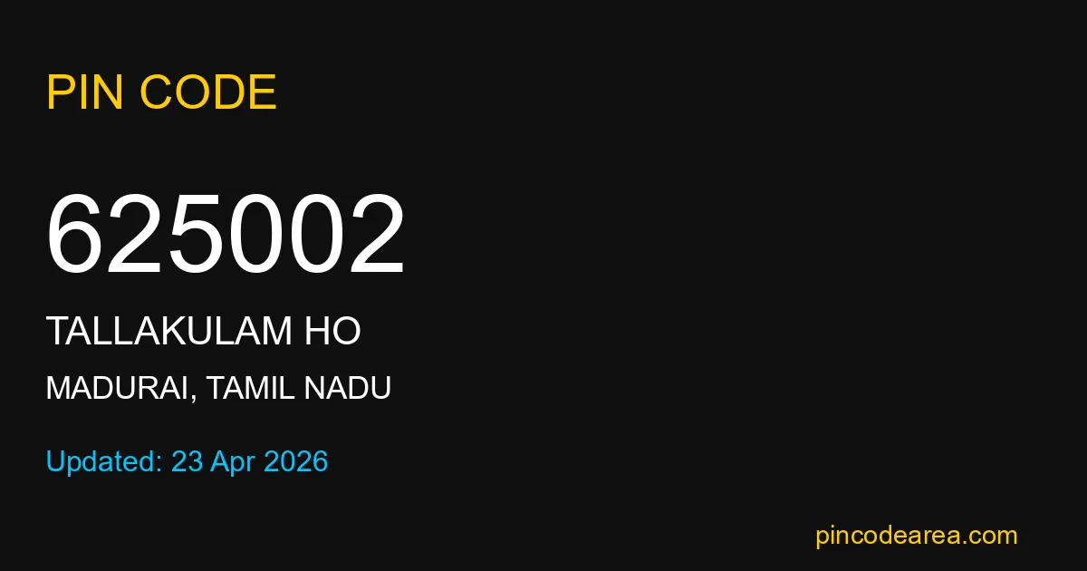 If you are searching for accurate location details, 625002 helps identify the exact postal region of Tallakulam HO in Tamil Nadu.