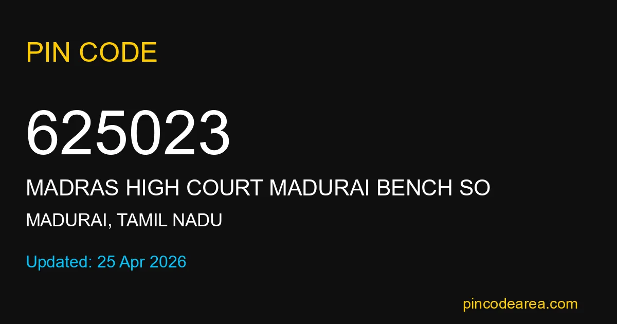 If you are searching for accurate location details, 625023 helps identify the exact postal region of Madras High Court Madurai Bench SO in Tamil Nadu.