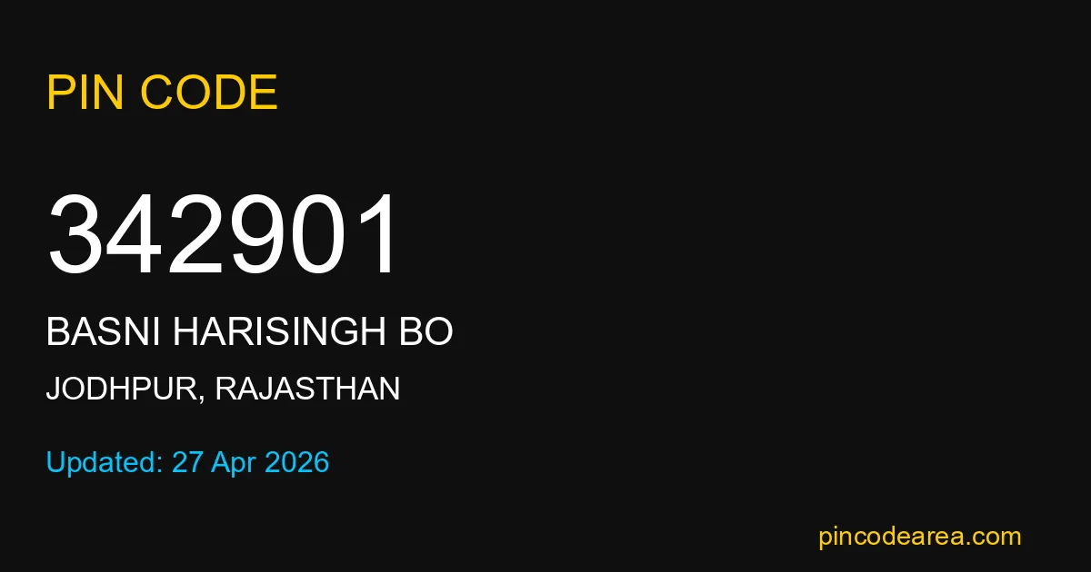 If you are searching for accurate location details, 342901 helps identify the exact postal region of Basni Harisingh BO in Rajasthan.