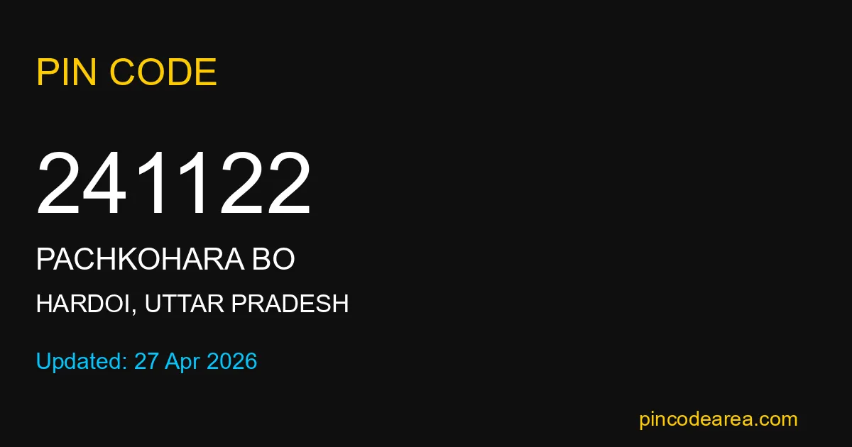 241122 PIN Code is assigned to Pachkohara BO Post Office located in Hardoi district of Uttar Pradesh. It helps identify the exact delivery area for postal and courier services.