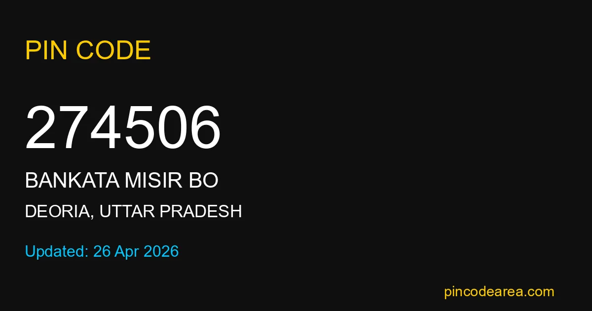 If you are searching for accurate location details, 274506 helps identify the exact postal region of Bankata Misir BO in Uttar Pradesh.