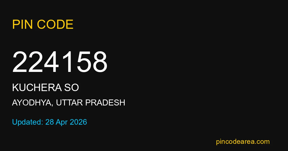 224158 PIN Code is assigned to Kuchera SO Post Office located in Ayodhya district of Uttar Pradesh. It helps identify the exact delivery area for postal and courier services.