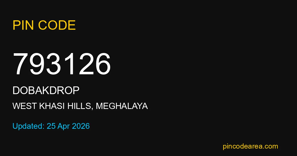 If you are searching for accurate location details, 793126 helps identify the exact postal region of Dobakdrop in Meghalaya.