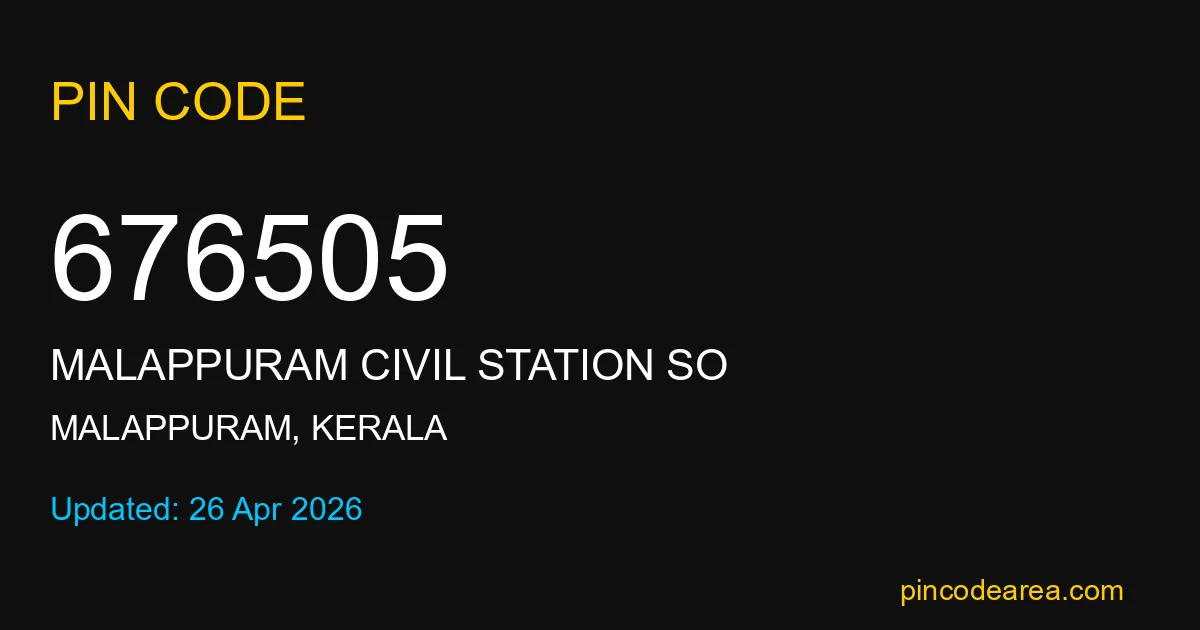 If you are searching for accurate location details, 676505 helps identify the exact postal region of Malappuram Civil Station SO in Kerala.