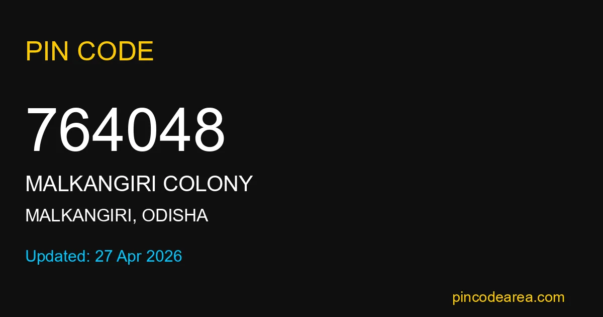 If you are searching for accurate location details, 764048 helps identify the exact postal region of Malkangiri Colony in Odisha.