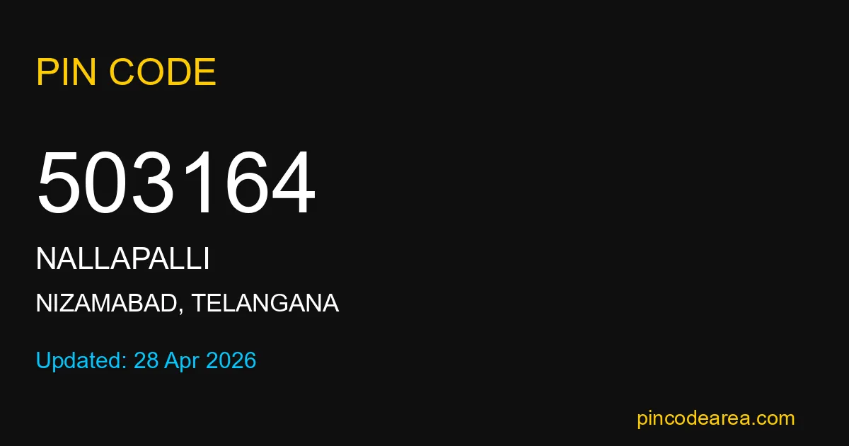 503164 PIN Code is assigned to Nallapalli Post Office located in Nizamabad district of Telangana. It helps identify the exact delivery area for postal and courier services.