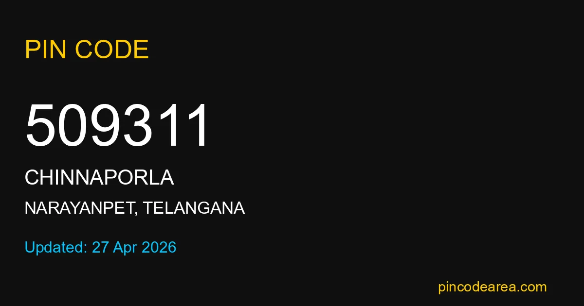 509311 PIN Code is assigned to Chinnaporla Post Office located in Narayanpet district of Telangana. It helps identify the exact delivery area for postal and courier services.