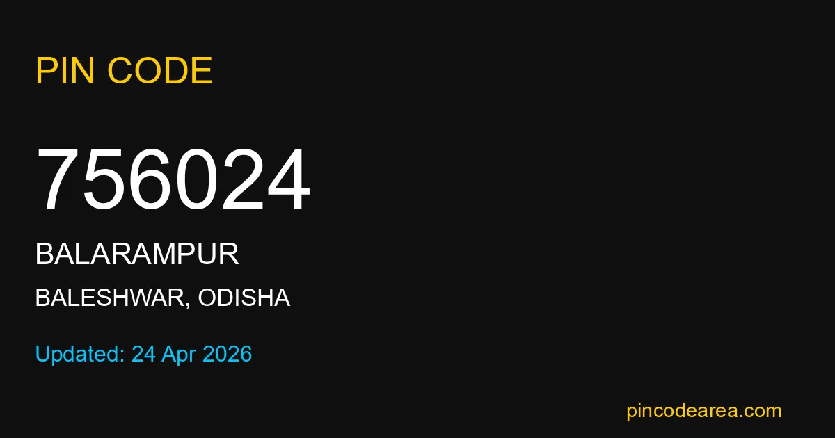 If you are searching for accurate location details, 756024 helps identify the exact postal region of Balarampur in Odisha.