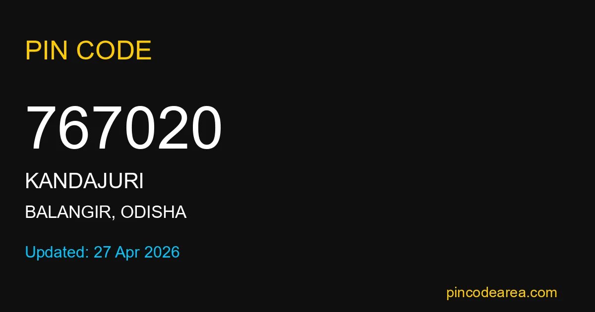 767020 PIN Code is assigned to Kandajuri Post Office located in Balangir district of Odisha. It helps in identifying the exact delivery area.