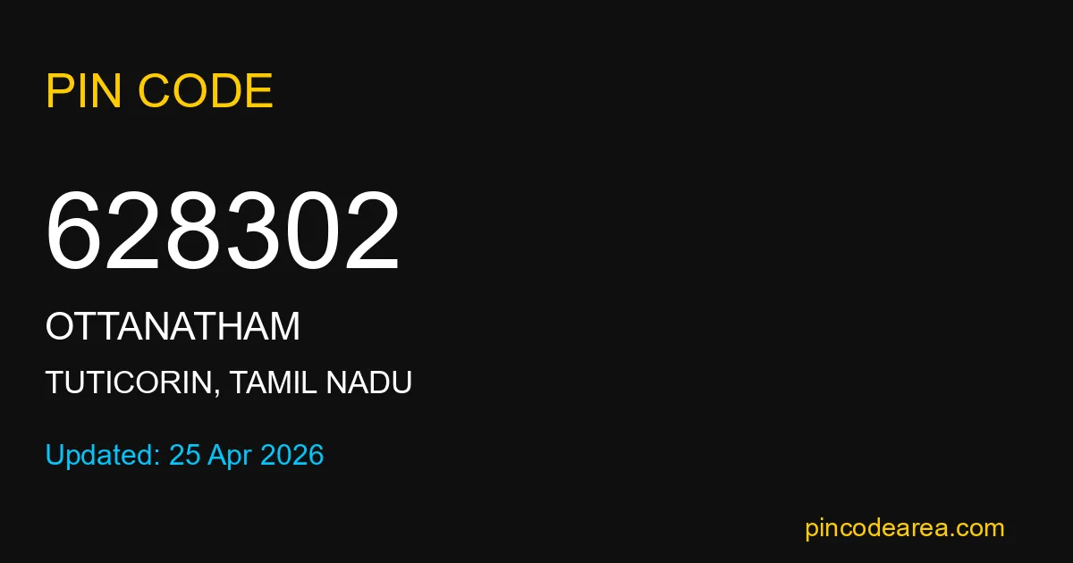 If you are searching for accurate location details, 628302 helps identify the exact postal region of Ottanatham in Tamil Nadu.