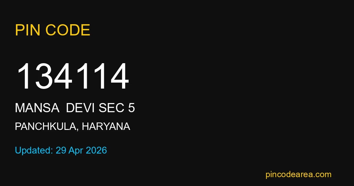 134114 PIN Code is assigned to Mansa Devi Sec 5 Post Office located in Panchkula district of Haryana. It helps identify the exact delivery area for postal and courier services.