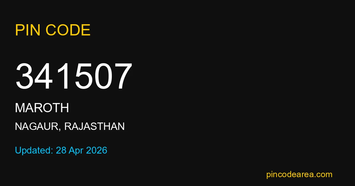 If you are searching for accurate location details, 341507 helps identify the exact postal region of Maroth in Rajasthan.