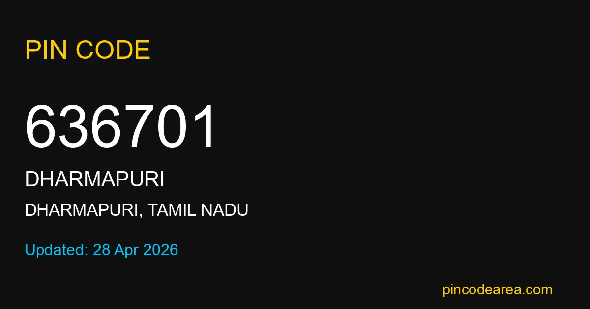 If you are searching for accurate location details, 636701 helps identify the exact postal region of Dharmapuri in Tamil Nadu.
