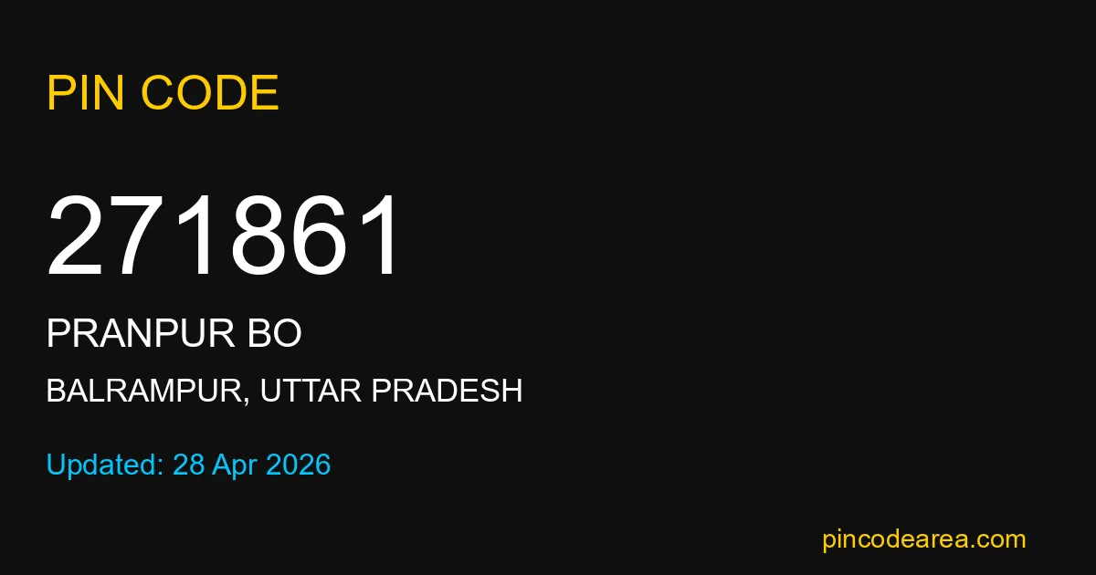 271861 PIN Code is assigned to Pranpur BO Post Office located in Balrampur district of Uttar Pradesh. It helps identify the exact delivery area for postal and courier services.