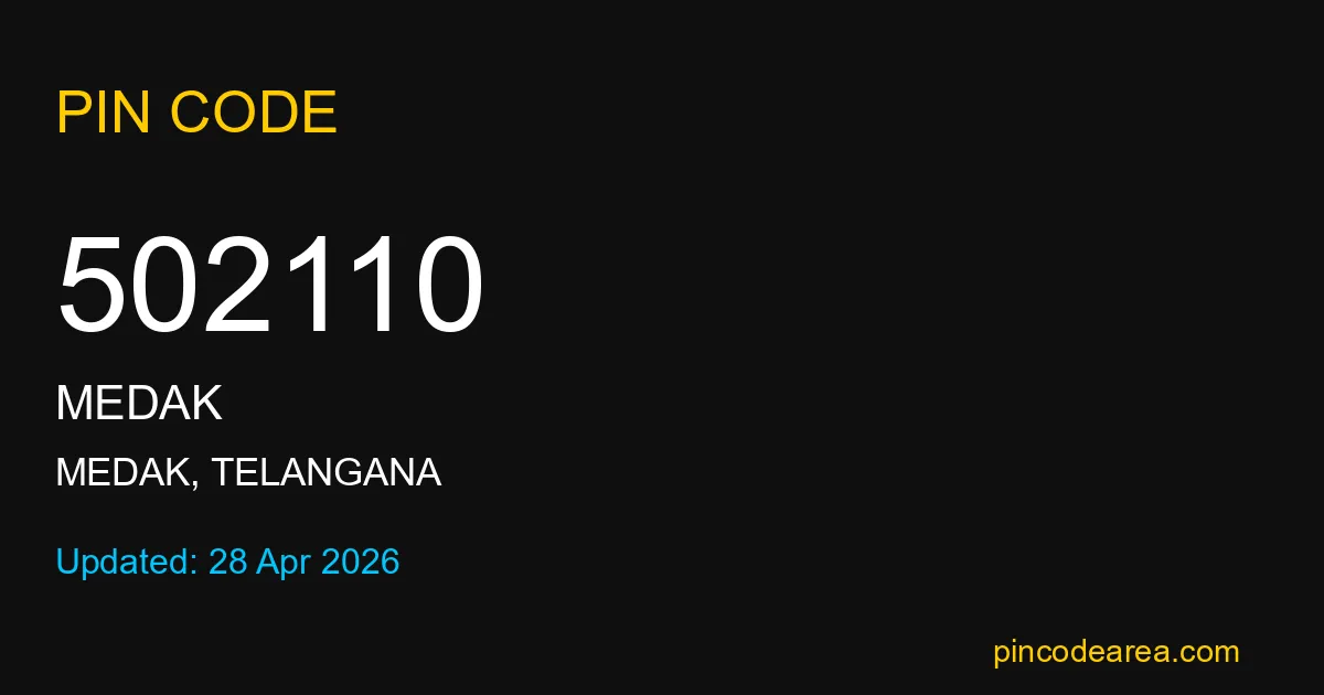 If you are searching for accurate location details, 502110 helps identify the exact postal region of Medak in Telangana.